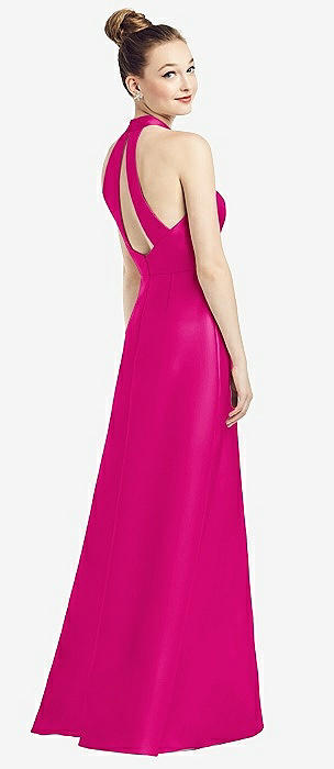 Stand Collar Halter Maxi Dress with Criss Cross Open-Back in think pink