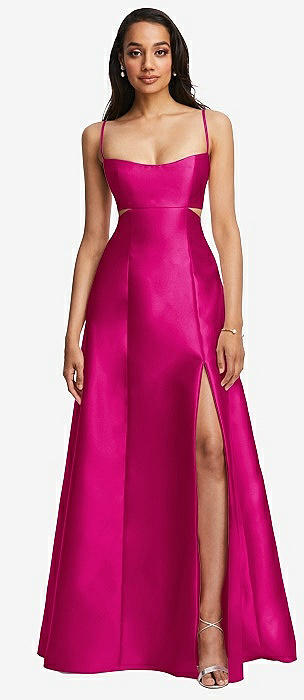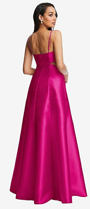 Open Neckline Cutout Satin Twill A-Line Gown with Pockets in think pink