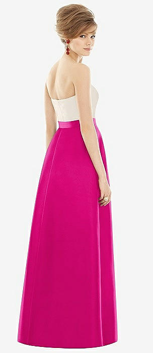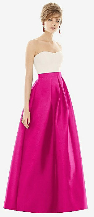 Strapless Pleated Skirt Maxi Dress with Pockets in think pink