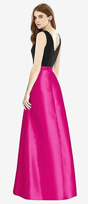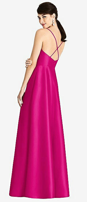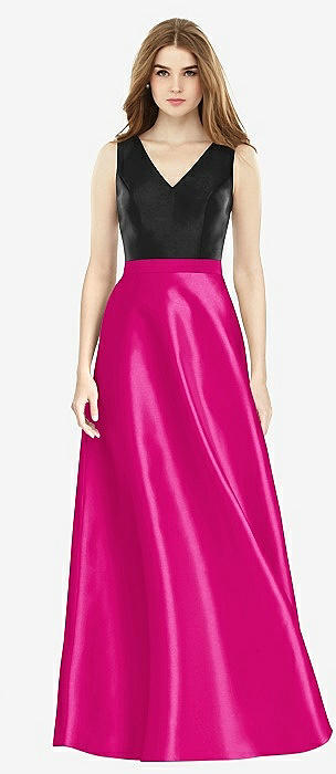 V-Neck Full Skirt Satin Maxi Dress in think pink