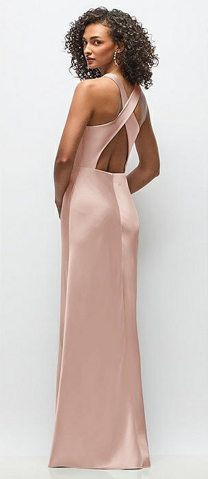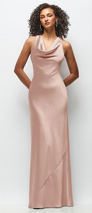 Cowl Neck Criss-Cross Back Satin Maxi Dress in toasted sugar