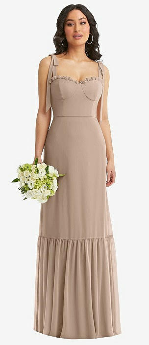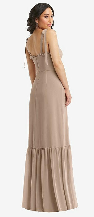 Tie-Shoulder Chiffon Maxi Dress with Front Slit in topaz