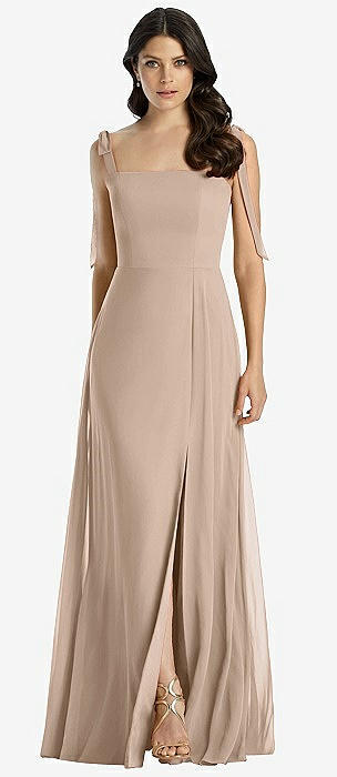Tie-Shoulder Chiffon Maxi Dress with Front Slit in topaz