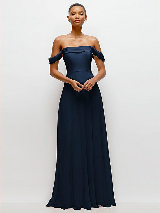 Off-the-Shoulder Draped Neckline Maxi Dress in midnight navy