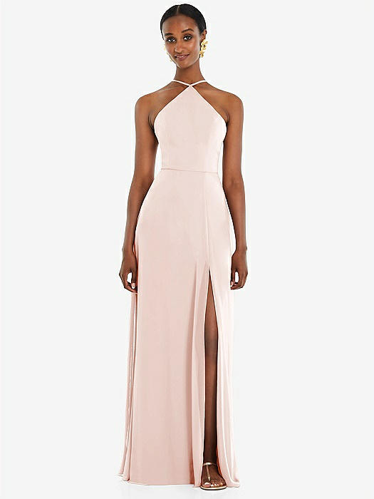 Diamond Halter Maxi Dress with Adjustable Straps in blush