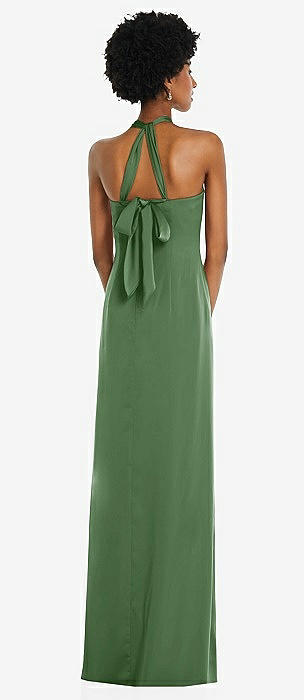 Draped Twist Halter Tie-Back Trumpet Gown in vineyard green