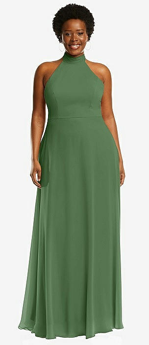 High Neck Halter Backless Maxi Dress in vineyard green