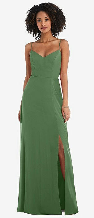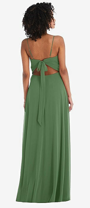 Low Tie-Back Maxi Dress with Adjustable Skinny Straps in vineyard green