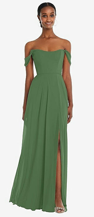 Tiered Chiffon Maxi A-line Dress with Convertible Ruffle Straps in vineyard green