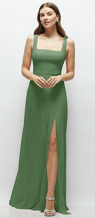 Square Neck Chiffon Maxi Dress with Circle Skirt in vineyard green