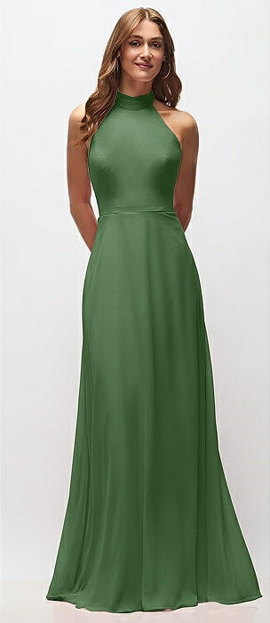 High Neck Halter Backless Maxi Dress in vineyard green