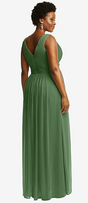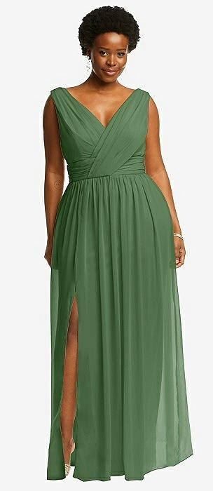 Sleeveless Draped Chiffon Maxi Dress with Front Slit in vineyard green