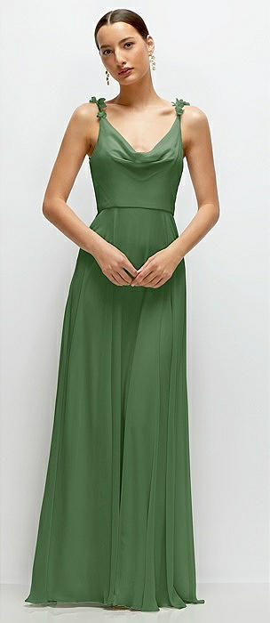 Cowl Neck Chiffon Maxi Dress with Hand-Worked Petal Straps in vineyard green