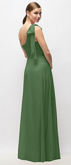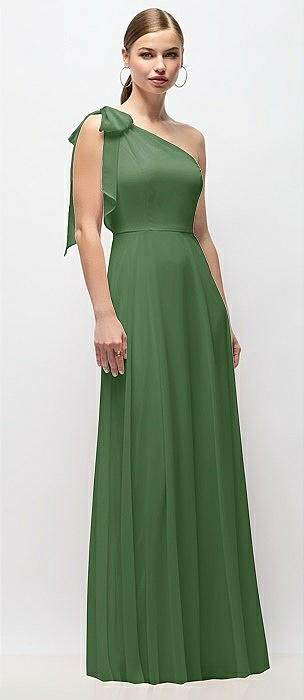 Draped One-Shoulder Maxi Dress with Scarf Bow in vineyard green