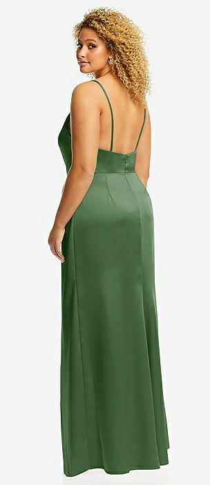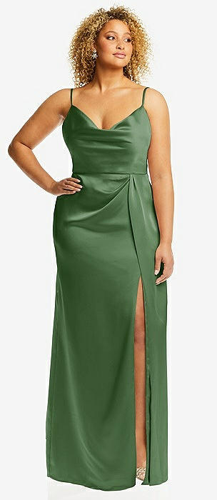 Cowl-Neck Draped Wrap Maxi Dress with Front Slit in vineyard green