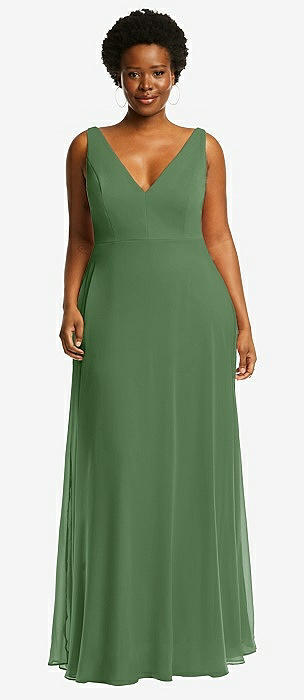 Deep V-Neck Chiffon Maxi Dress in vineyard green