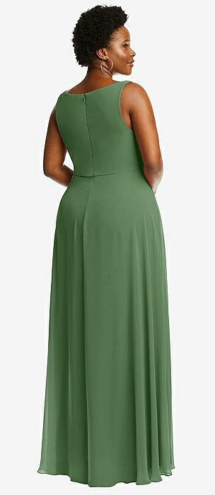 Sleeveless Draped Chiffon Maxi Dress with Front Slit in vineyard green
