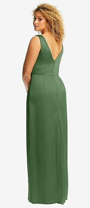 Draped Chiffon Grecian Column Gown with Convertible Straps in vineyard green