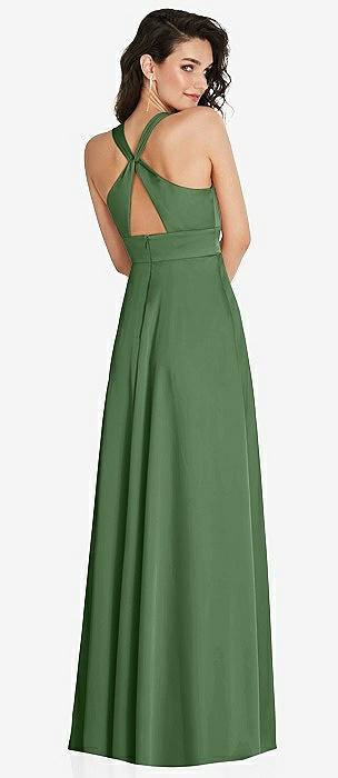 High Neck Backless Maxi Dress with Slim Belt in vineyard green