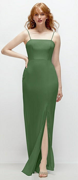 Tie-Back Cutout Trumpet Gown with Front Slit in vineyard green