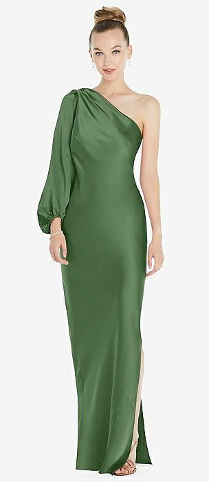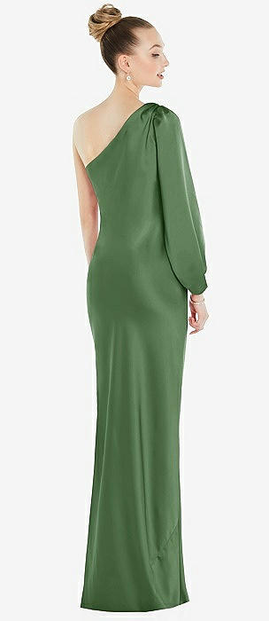 One-Shoulder Puff Sleeve Maxi Bias Dress with Side Slit