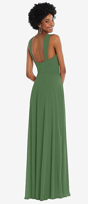 Framed Bodice Criss Criss Open Back A-Line Maxi Dress in vineyard green