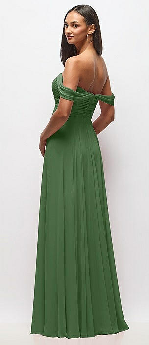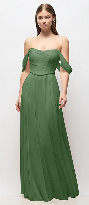 Off-the-Shoulder Basque Corset Chiffon Maxi Dress in vineyard green