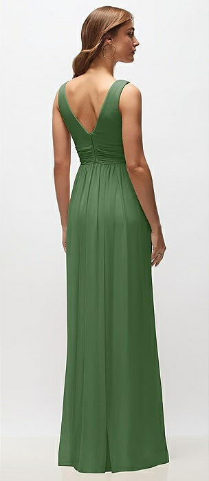 Draped Chiffon Grecian Column Gown with Convertible Straps in vineyard green