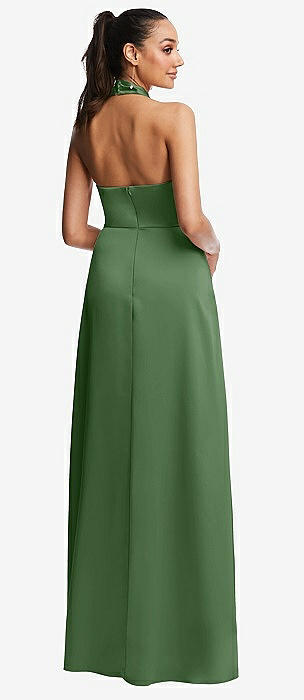 Shawl Collar Open-Back Halter Maxi Dress with Pockets in vineyard green
