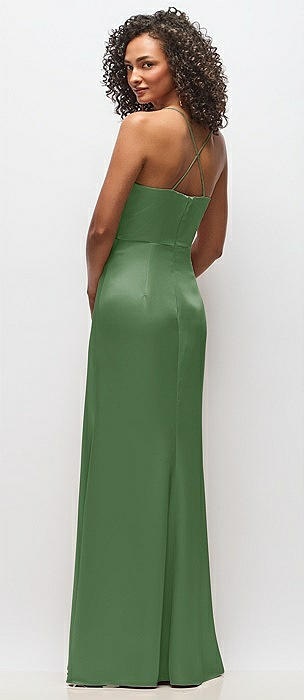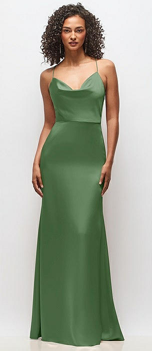 Cowl-Neck Criss Cross Back Slip Dress in vineyard green