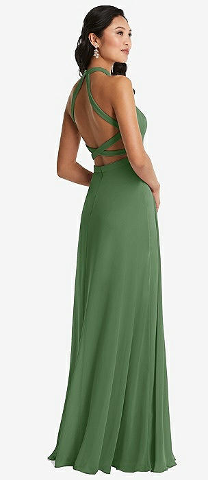 Stand Collar Halter Maxi Dress with Criss Cross Open-Back