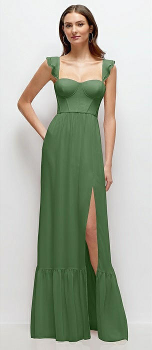 Ruffle Strap Chiffon Bustier Maxi Dress with Ruffle Hem A-Line Skirt in vineyard green