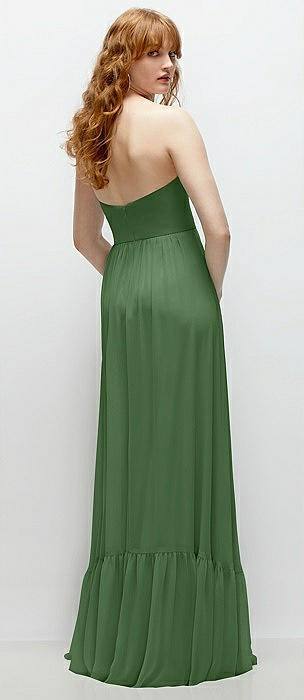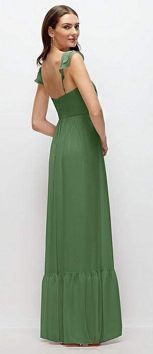 Bustier-Style Chiffon Tiered Ruffle Maxi Dress with Adjustable Straps in vineyard green