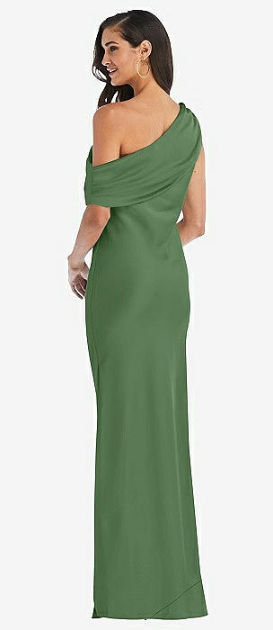 Draped One-Shoulder Convertible Maxi Slip Dress in vineyard green
