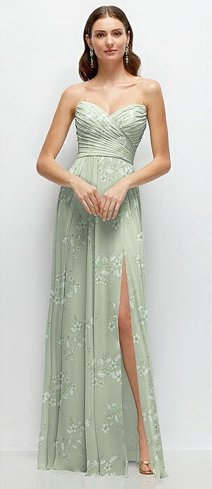 Strapless Pleated Surplice Chiffon Maxi Dress with A-Line Skirt in vintage primrose sage