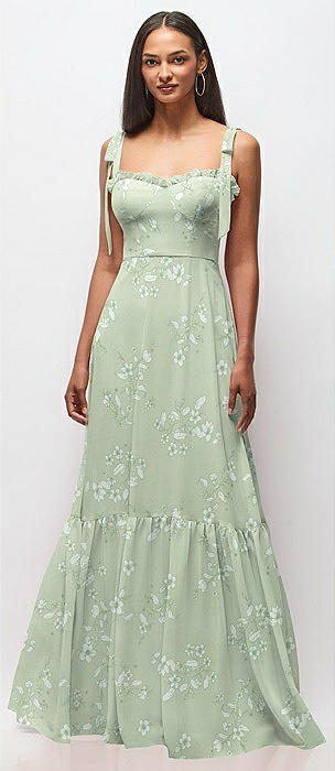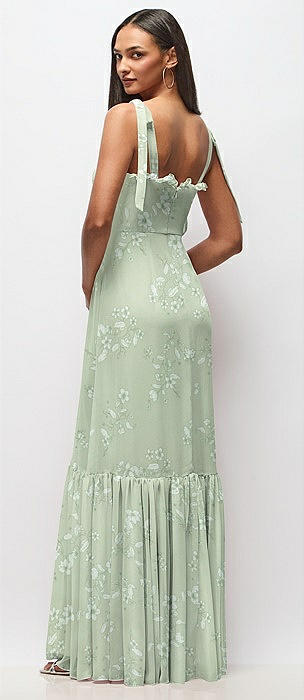 Tie-Shoulder Bustier Bodice Ruffle-Hem Maxi Dress in vintage primrose sage