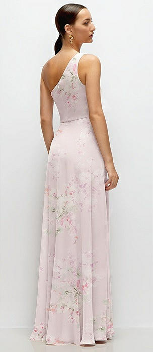 Chiffon One-Shoulder Maxi Dress with Circle Skirt in watercolor print