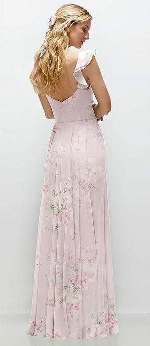 Convertible Ruffle Strap Chiffon Maxi Dress with Full Circle Skirt in watercolor print