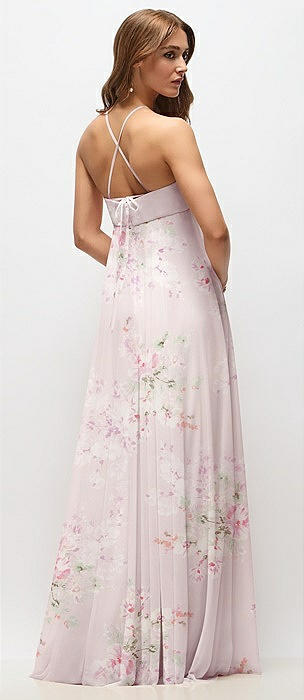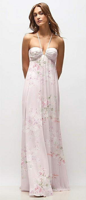 Empire Waist Floral Chiffon Halter Maxi Dress with Convertible Spaghetti Straps in watercolor print