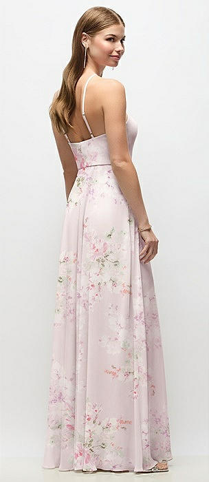 Cowl Neck Chiffon Maxi Dress with Hand-Worked Petal Straps in watercolor print