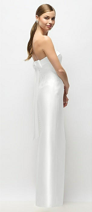 Strapless Cuff Satin Maxi Dress with Column Skirt & Back Bow in white