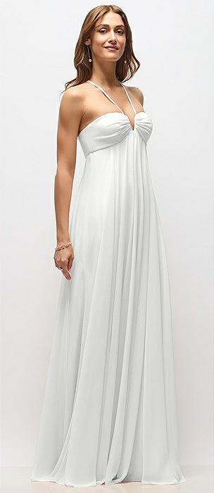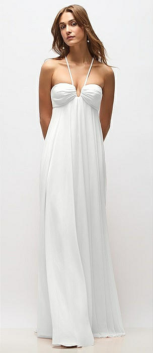 Empire Waist Chiffon Halter Maxi Dress with Convertible Spaghetti Straps in white