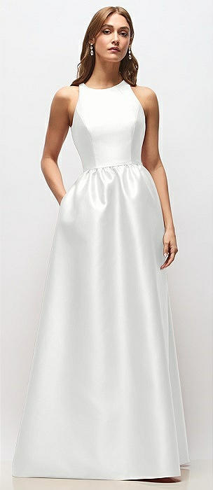 Sleeveless A-Line Satin Dress with Pockets in white