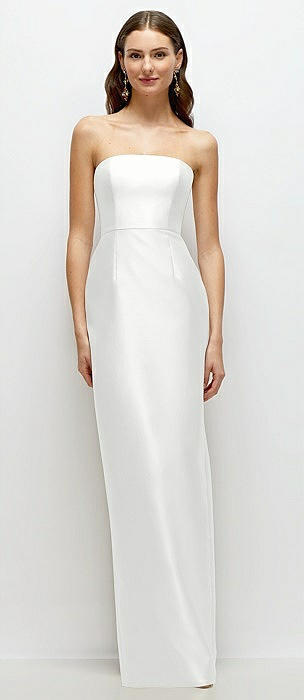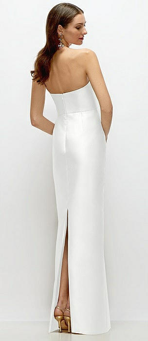 Strapless Satin Column Dress with Back Slit in white