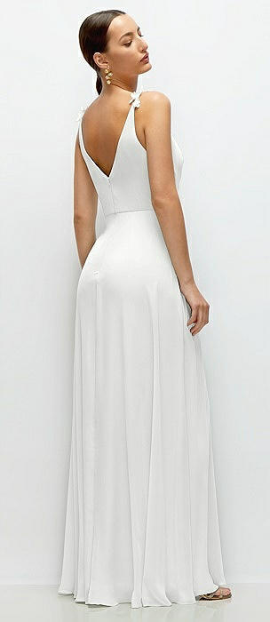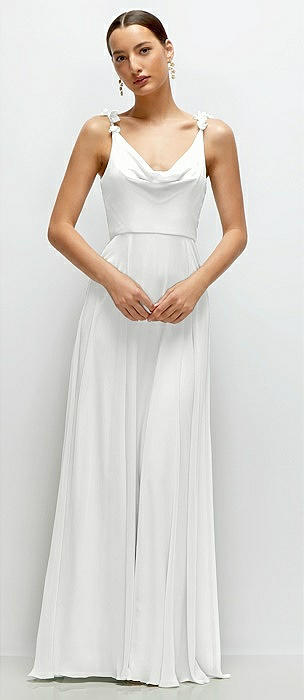 Cowl Neck Chiffon Maxi Dress with Hand-Worked Petal Straps in white
