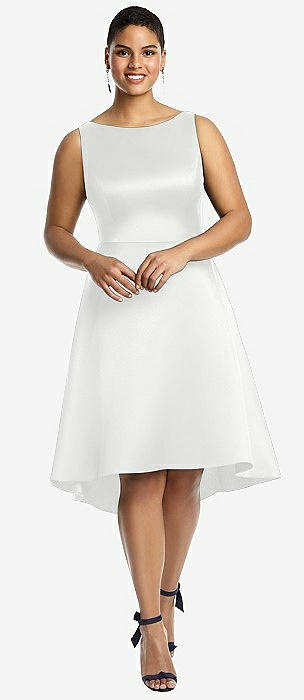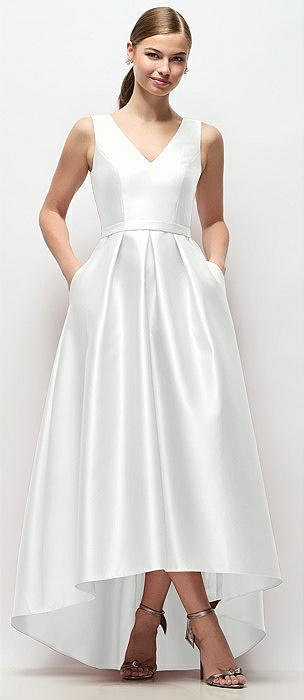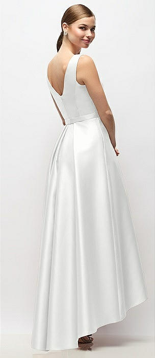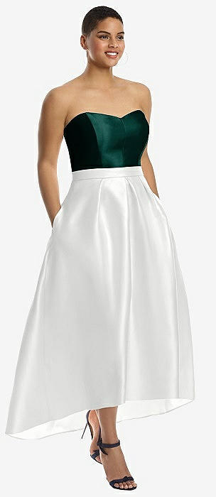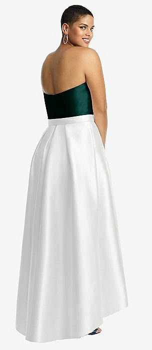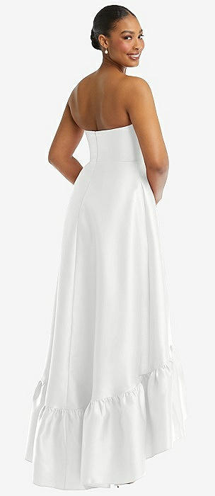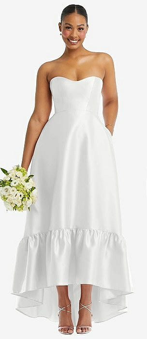 Strapless Deep Ruffle Hem Satin High Low Dress with Pockets in white