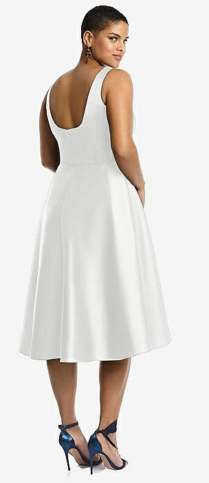 Sleeveless Pleated Skirt High Low Dress with Pockets in white