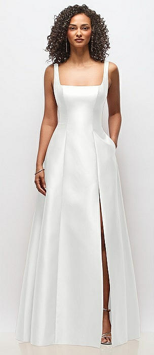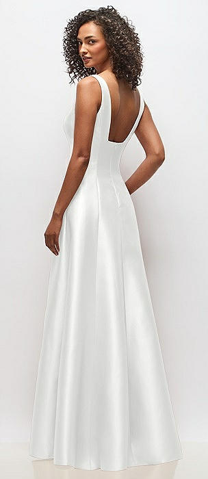 Sleeveless Square-Neck Princess Line Gown with Pockets in white