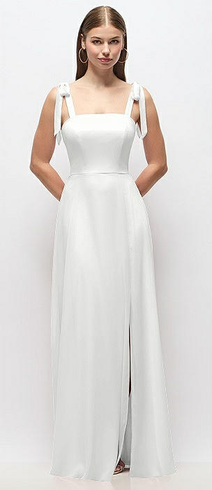 White Square Neckline Bridesmaid Dresses
