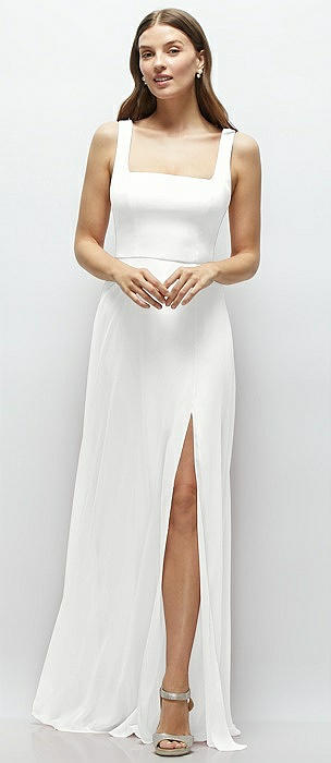 Square Neck Chiffon Maxi Dress with Circle Skirt in white